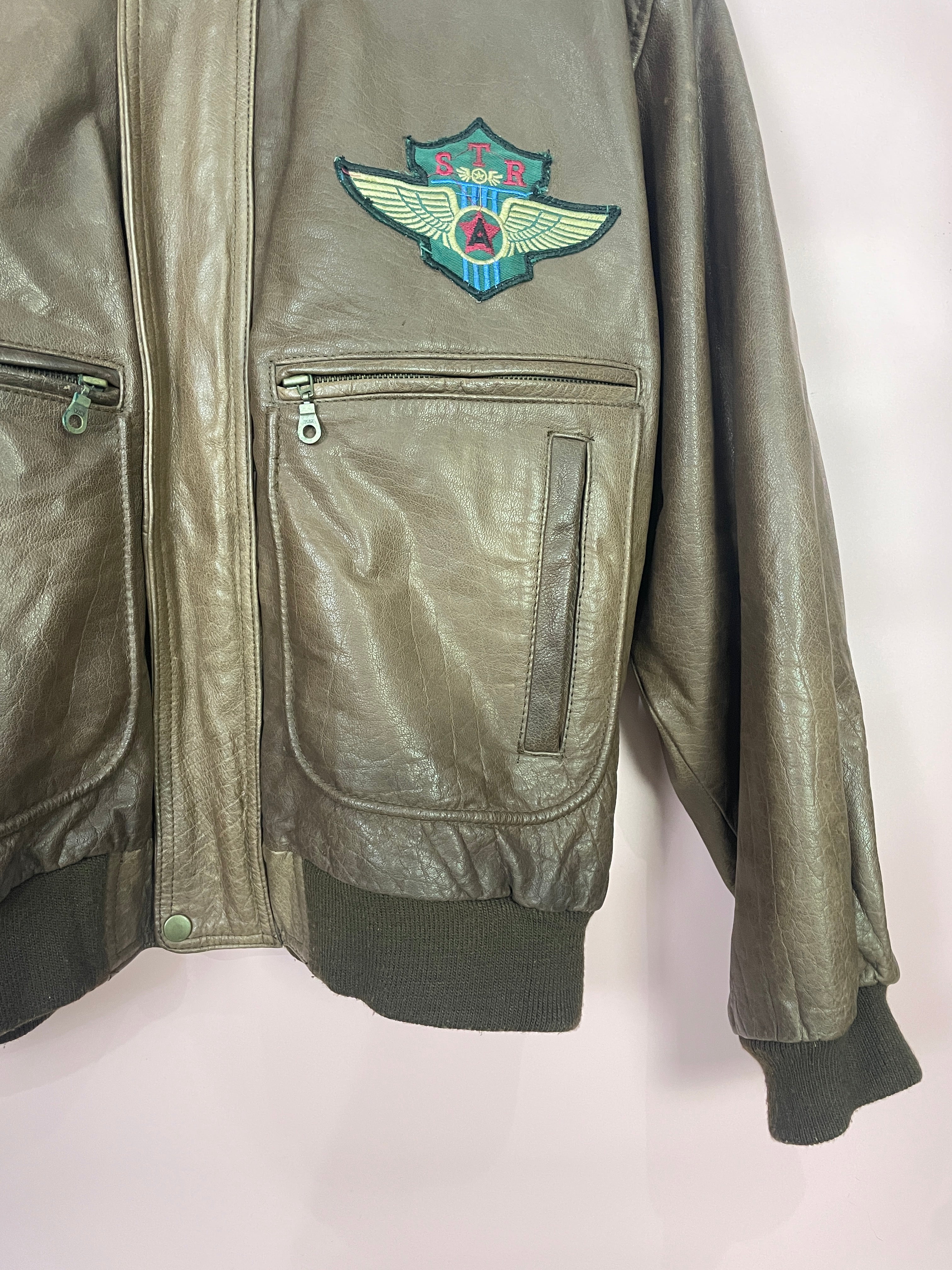 L Leder Piloten Jacke dunkelbraun