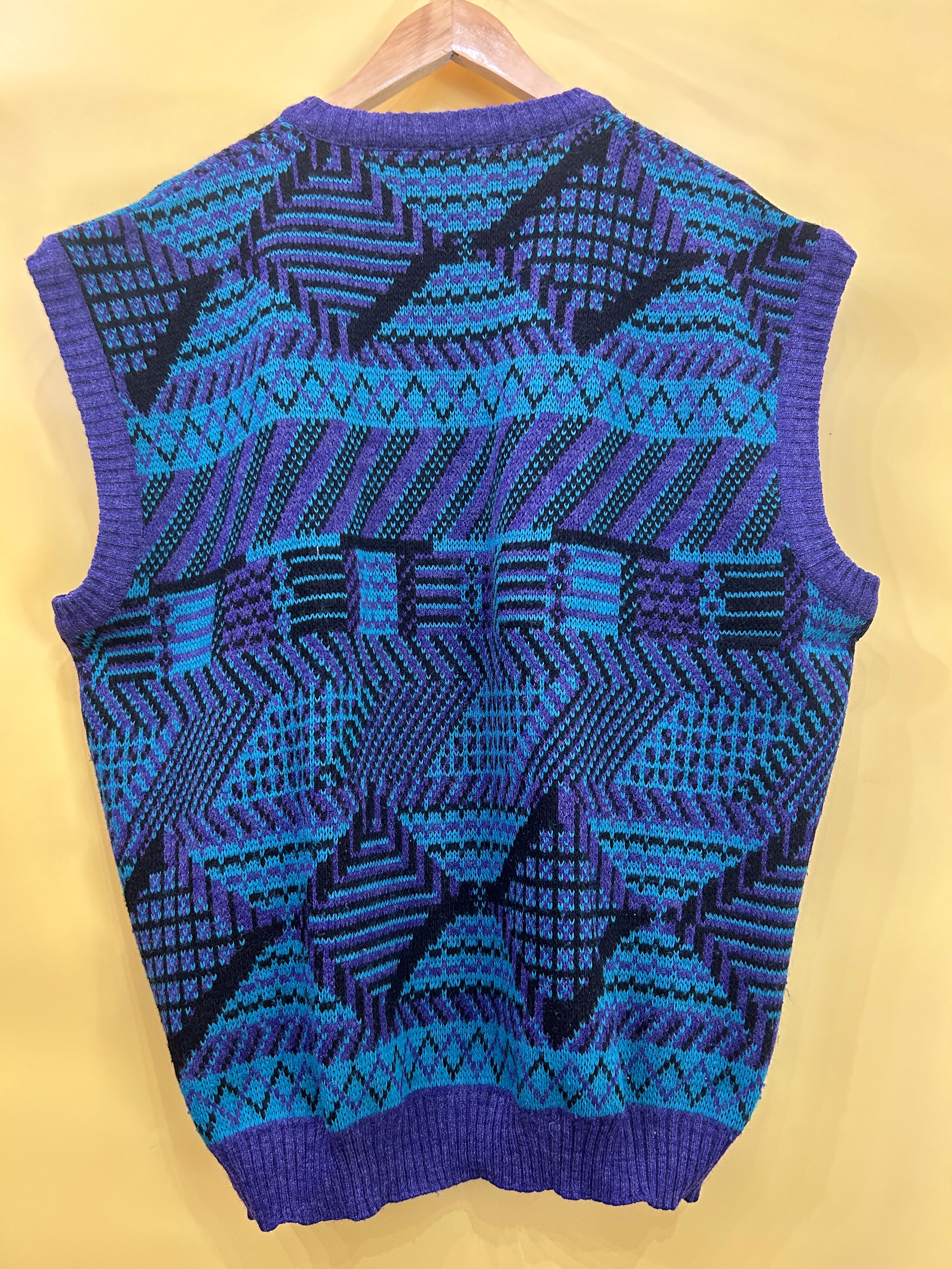 L-XL Vintage Pullunder Knitwear Crazy Patterns geometric