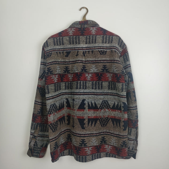 M-L Vintage Hemd Navajo Muster Rot Grau