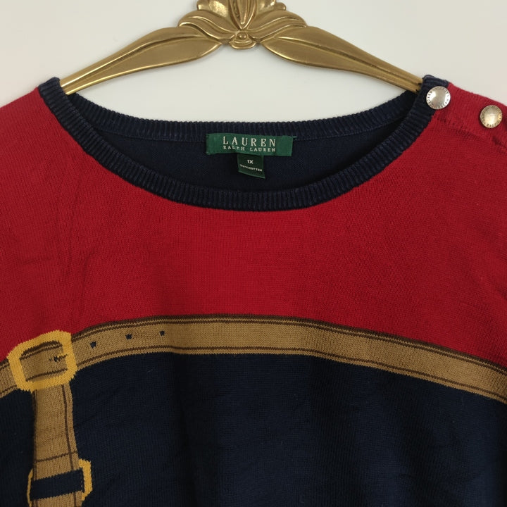 M Vintage Pullover Gürtel Blau Rot